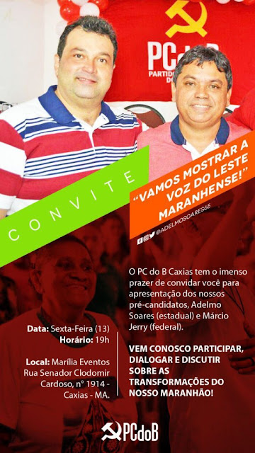 O pré-candidato a deputado Estadual, Adelmo Soares, PCdoB, apresentará em Caxias, Márcio Jerry, também do PCdoB, como seu Candidato a Deputado Federal.