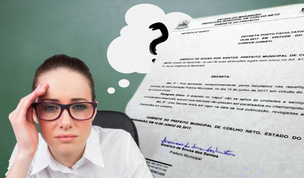 Os atos do Prefeito de Coelho Neto vêm surpreendendo a população a cada dia. No início da noite a cidade se deparou com uma nota emitida pela assessoria de comunicação do Prefeito Américo de Sousa (PT), no qual o mesmo decreta ponto facultativo em pleno feriado de Corpus Christi, não dispensando a data como dia de trabalho, dispondo que as unidades e serviços considerados essenciais não poderão ser paralisados ou interrompidos.