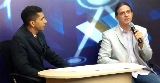 Jornalista Ricardo Rodrigues em entrevista com o prefeito Fábio Gentil