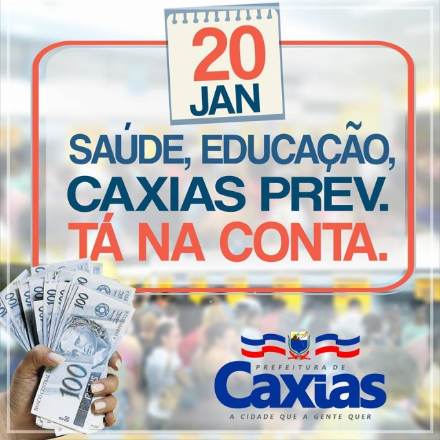 No final da tarde desta sexta-feira, dia 20, a prefeitura de Caxias depositou os salários dos funcionários efetivos das secretarias de Saúde e Educação nas suas respectivas contas salário. Sendo que ainda ontem, dia 19, os servidores da Prefeitura, lotados nos órgãos vinculados a Secretaria de Administração, já haviam recebido o pagamento referente ao mês de janeiro.
